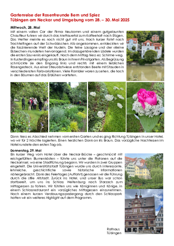 Gartenreise der Rosenfreunde Bern und Spiez Tübingen am Neckar und Umgebung vom 28. – 30. Mai 2025