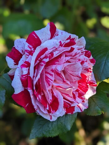 Auch unter den Floribundarosen gibt es Sorten mit gestreiften Blüten, die sogar noch gefüllt sind und duften und sich somit durchaus für romantische Gärten oder Beete eignen. So beispielsweise Scentimental® mit crèmeweiss und burgunderrot gestreiften Petalen, vereint in gefüllten Blüten mit intensivem Duft. Die Pflanze wächst kompakt buschig, hat kräftiges und gesundes Blattwerk und erreicht eine Höhe von 60–70 cm. Die Blüten der mehrmalsblühenden Gewinnerin der All-America Rose Selections im Jahre 1997 zeigen sich bei kühleren Temperaturen in sattesten Farben.